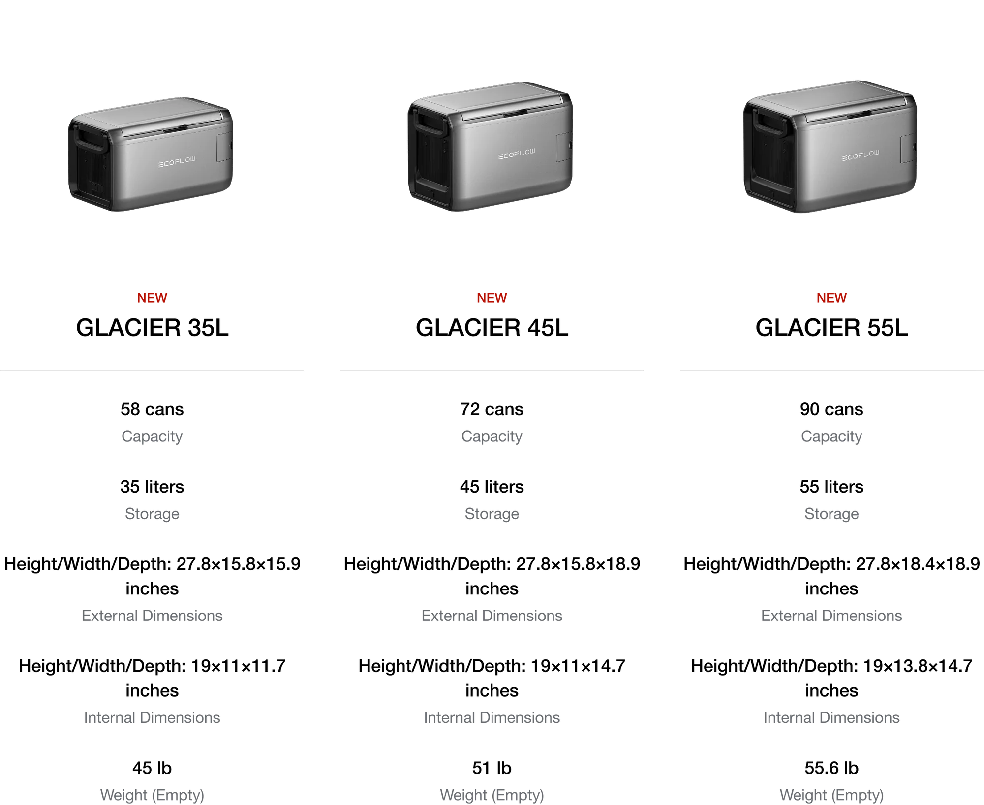 Available in 35L, 45L, and 55L capacities, the EcoFlow GLACIER Classic 35L is comparable to a standard 24-inch suitcase. It’s an ideal fit for SUVs, Class B RVs, off-road vehicles, and more, saving valuable space while providing ample storage for your adventures.