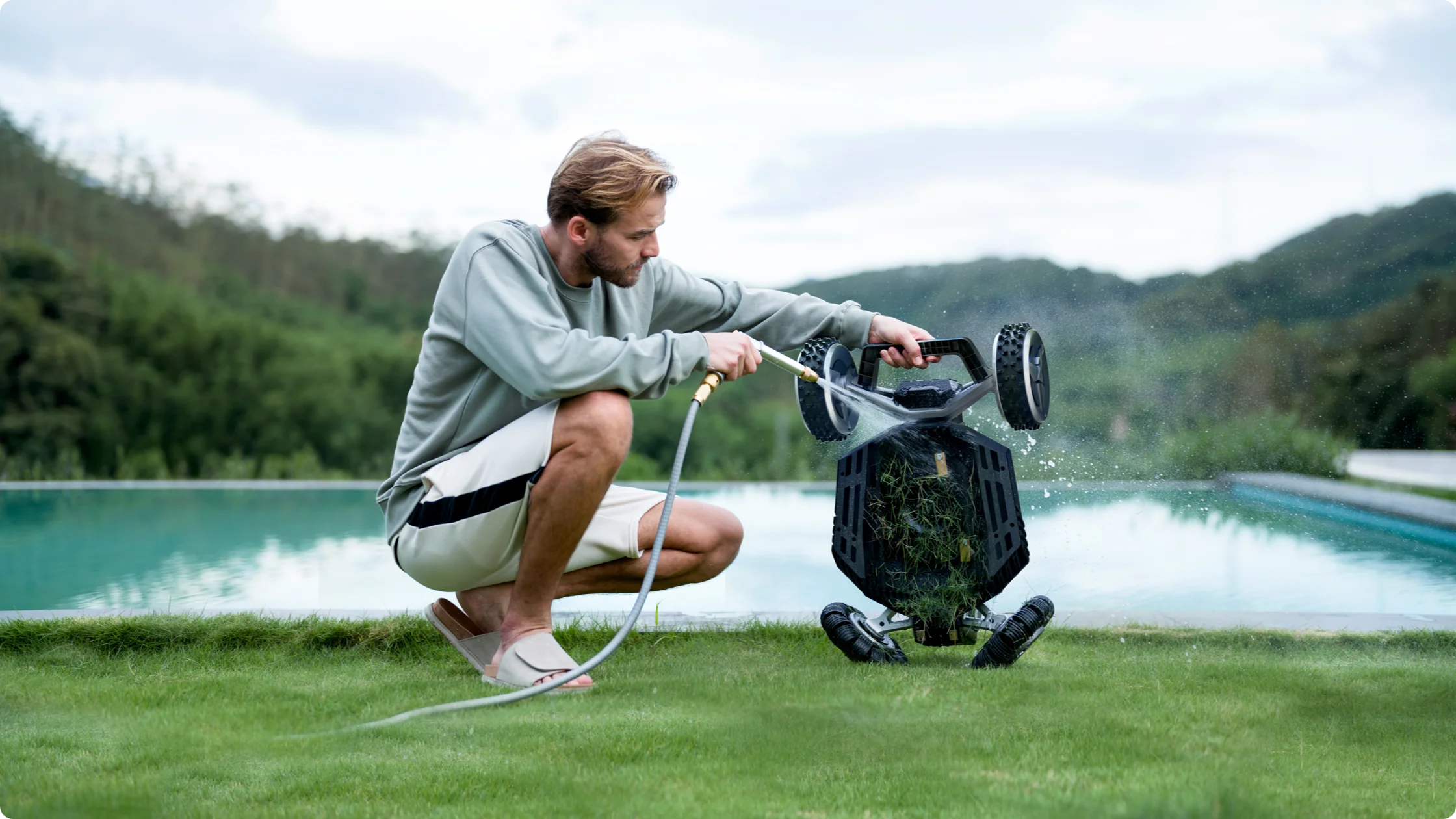 IPX5 წყალგამძლეობის რეიტინგით, გარეცხეთ BLADE დაბალი წნევის წყლის ჭავლით, ბორბლებიდან ნამსხვრევების ან ნიადაგის მოსაშორებლად.